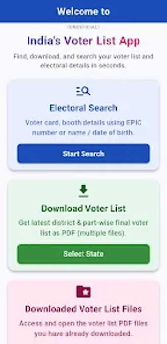 แอปพลิเคชัน Voter List & Electoral Search ให้โซลูชันที่ราบรื่นสำหรับผู้ใช้ในอินเดียในการค้นหา ดู และดาวน์โหลดรายชื่อผู้มีสิทธิเลือกตั้งล่าสุดจากคณะกรรมการการเลือกตั้งของอินเดีย แอปพลิเคชัน Android ฟรีนี้มีอินเทอร์เฟซที่ใช้งานง่ายที่ช่วยให้ผู้ใช้สามารถเลือกสถานะ เขต และเขตเลือกตั้ง ทำให้เข้าถึงรายชื่อผู้มีสิทธิเลือกตั้งที่เกี่ยวข้องได้ง่าย ผู้ใช้สามารถดาวน์โหลดทั้งรายชื่อร่างและรายชื่อสุดท้าย เพื่อให้แน่ใจว่าพวกเขามีข้อมูลที่เป็นปัจจุบันที่สุดอยู่ในมือ